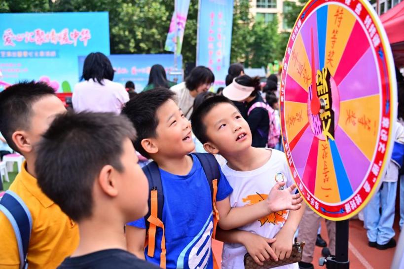 赞佩的文籍、新奇的玩物、轮廓的手工艺品……喜迎“六一”外洋儿童节,北京市海淀区民族小学的爱心义卖步履现场烈烈轰轰。